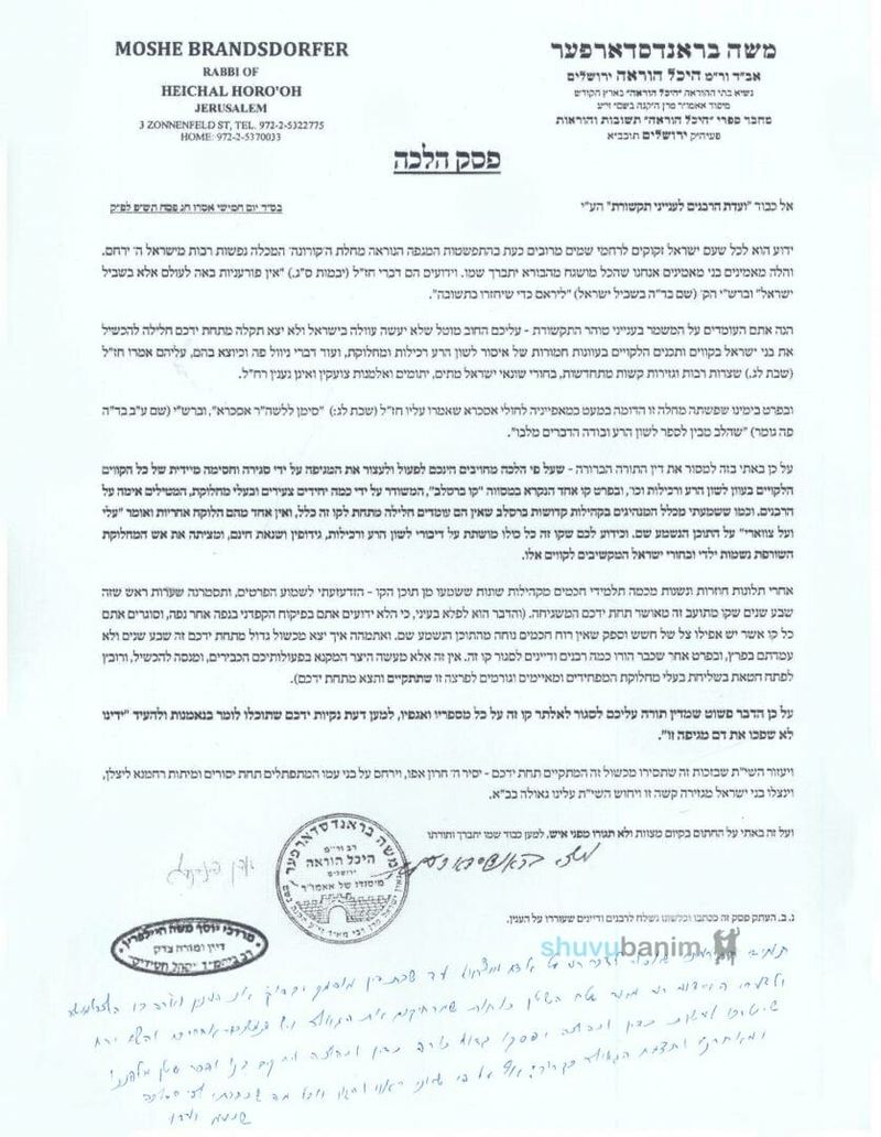 רבנים נוספים מצטרפים לפסק ההלכה כנגד הקווים המפיצים לשון הרע ומחלוקת