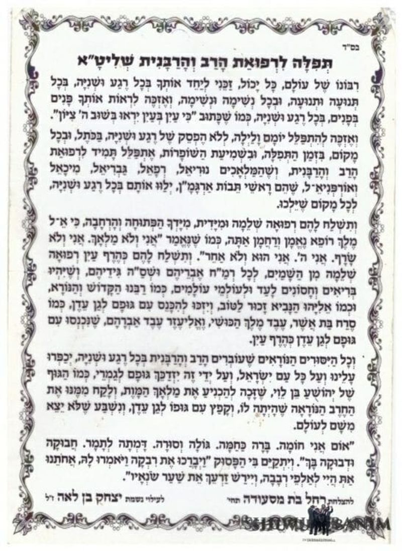 התפילה הכל כך חשובה לרפואת הרב והרבנית שליט"א - זהו ממש צו השעה