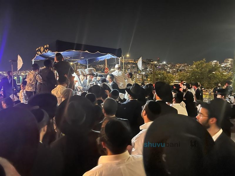אלפים מכל הארץ הגיעו להשתתף בשמחת בית הצדיק ורקדו בשמחת חתן וכלה שעות ארוכות, בשעה 12:41 נכנס בשערי אולמי "נופי עילית" הלבבות געשו והשמחה הוכפלה בשירת 'קול רינה וישועה באוהלי צדיקים', על אף גילו המבוגר מורינו הרב שליט"א שר ורקד במשך שעה ארוכה בחיות גדולה ובשמחה עצומה כדוד בשעתו שהיה מכרכר בכל עוז! תוך כדי הריקודים נכנסו למעגל 'שבעת הקבצנים' כמנהג ברסלב ולקול צלילי התזמורת רקדו במעגל כל ה'בעלטערים' בשמחת חתן וכלה. לאחר הריקוד הם ניגשו זה אחר זה אל מורינו הרב שליט"א נישקו את ידיו הקדושות וקיבלו את ברכתו בשמחה גדולה.
