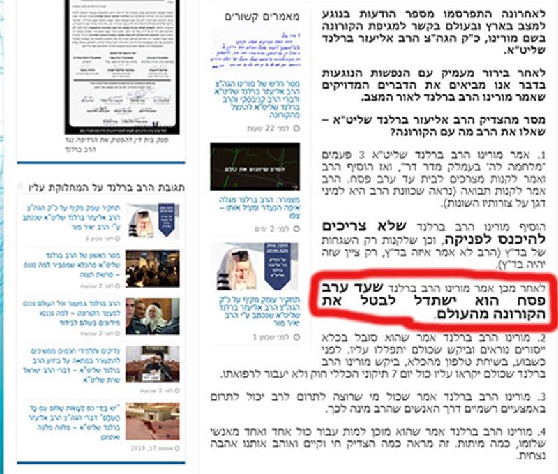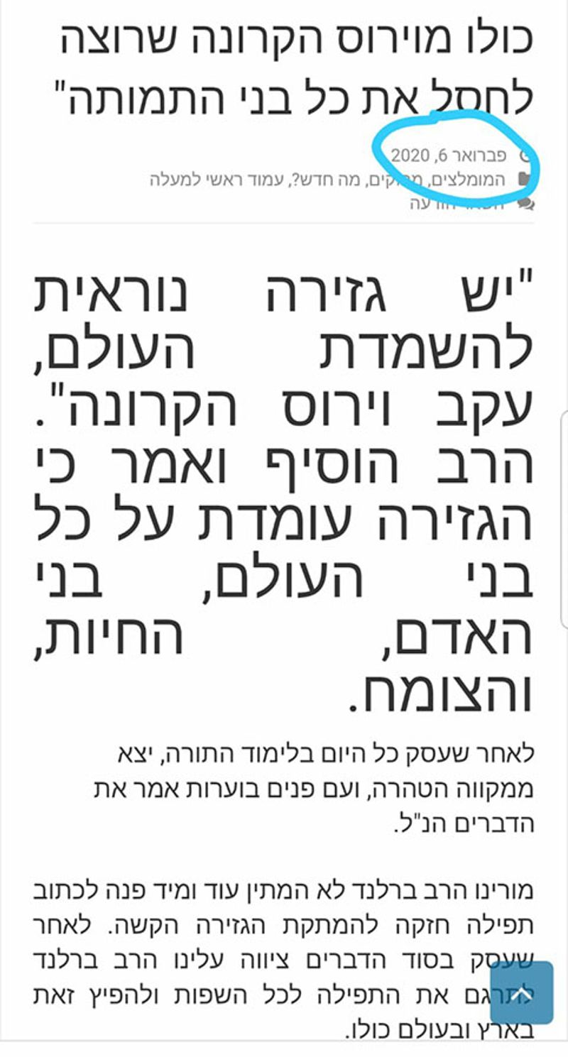 הכתבה שפרסמה את דברי הרב ברלנד על הגזירה של הקורונה שהולכת להתפשט בעולם