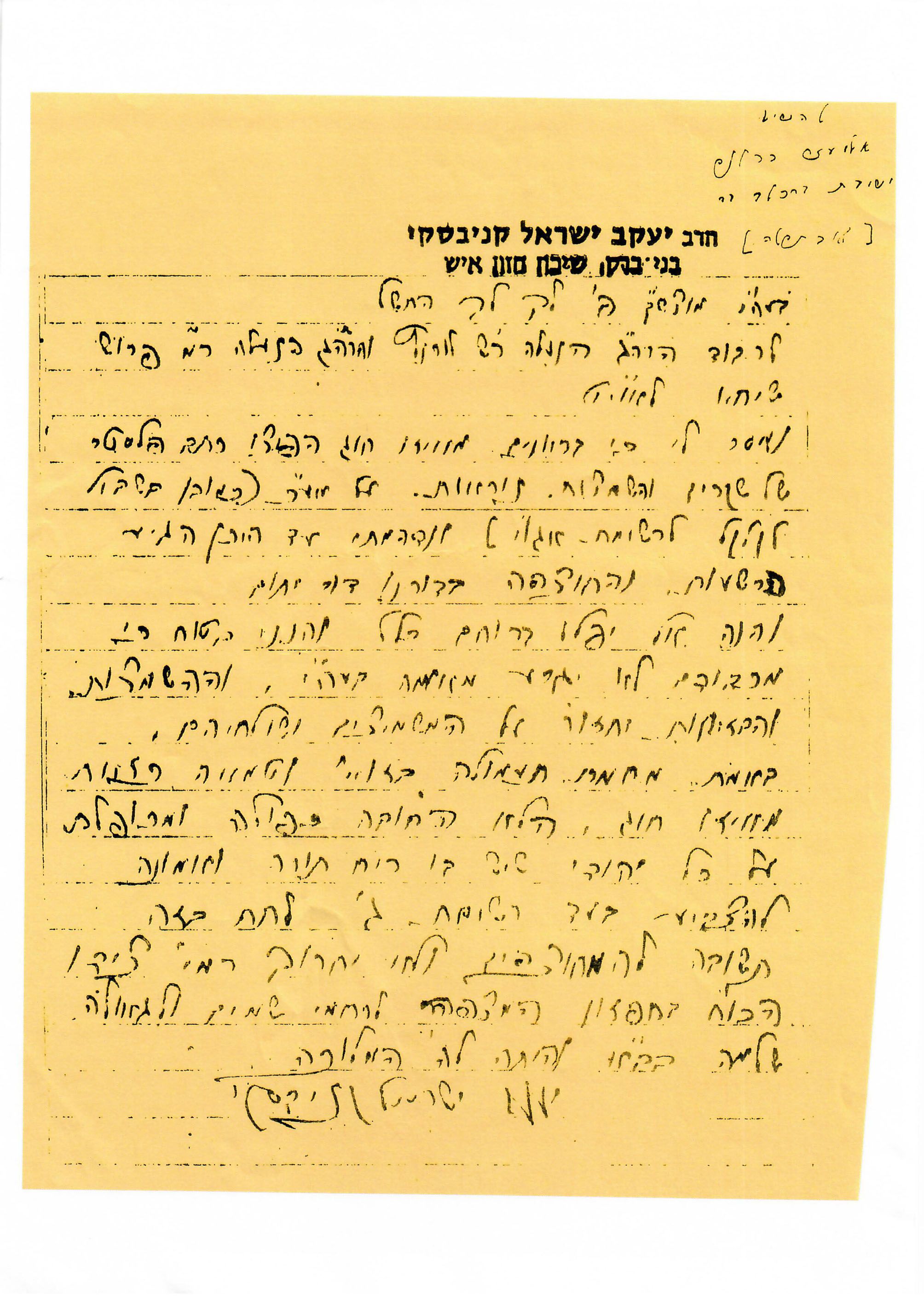 חשיפה: מכתב תמיכה של הסטייפלר זצ"ל לאחר השתדלות של הגה"צ הרב ברלנד שליט"א