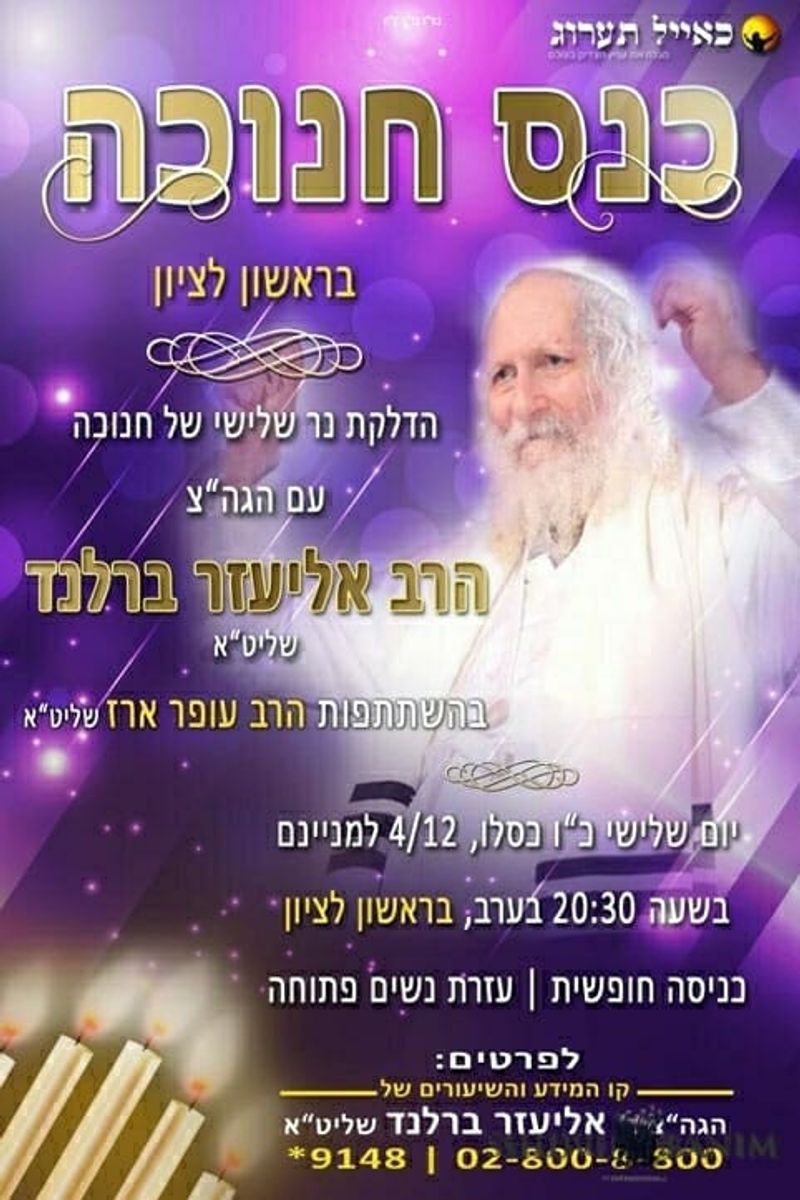 כנס נר שלישי של חנוכה בראשון לציון עם הגה"צ הרב אליעזר ברלנד שליט"א