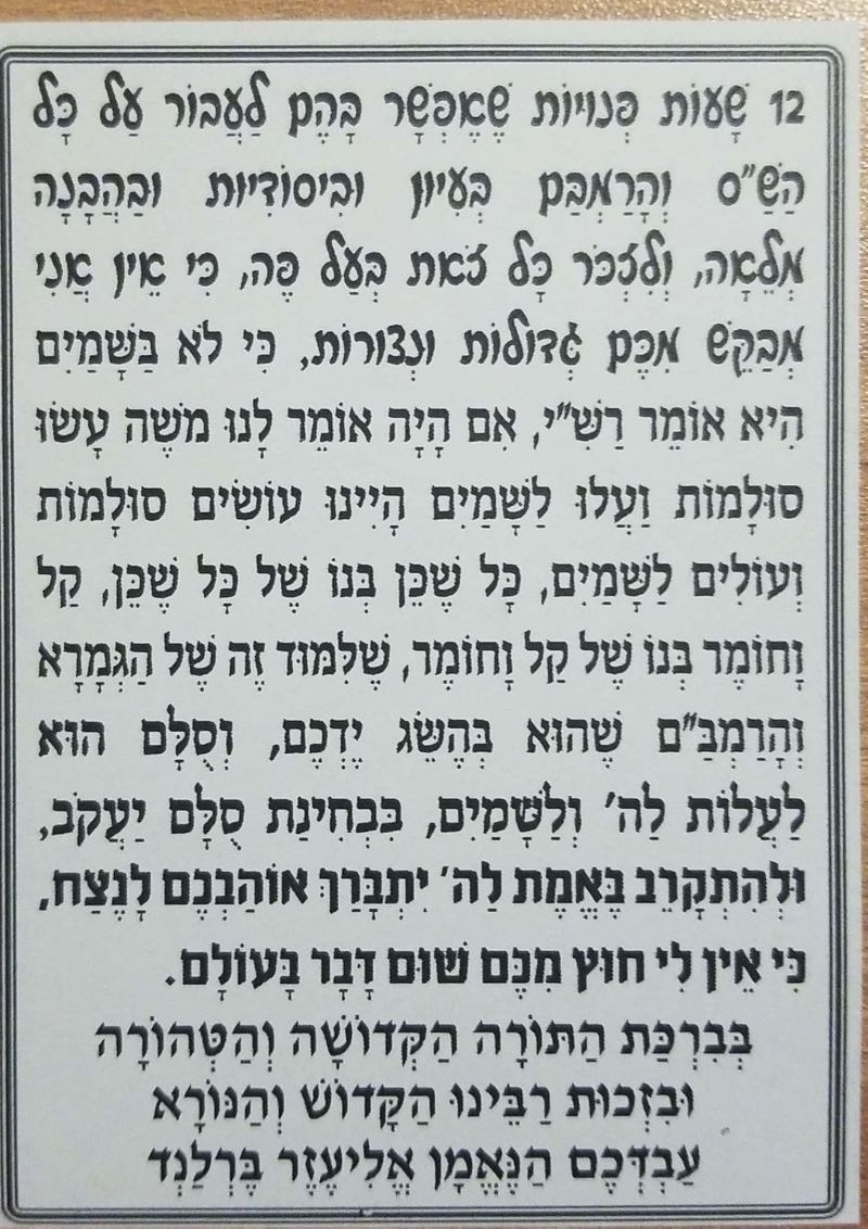 אלה דברי קודשו כפי שהופיעו באחת מהתפילות להצלחה בסדר הלימוד: