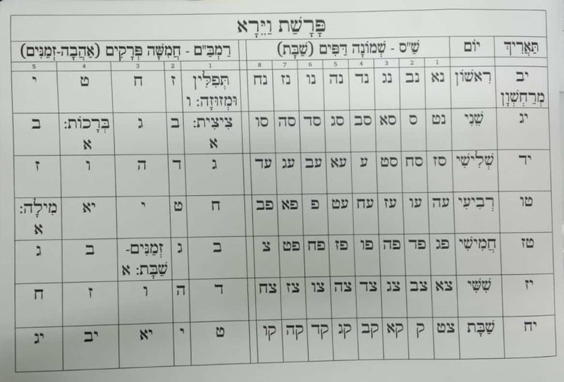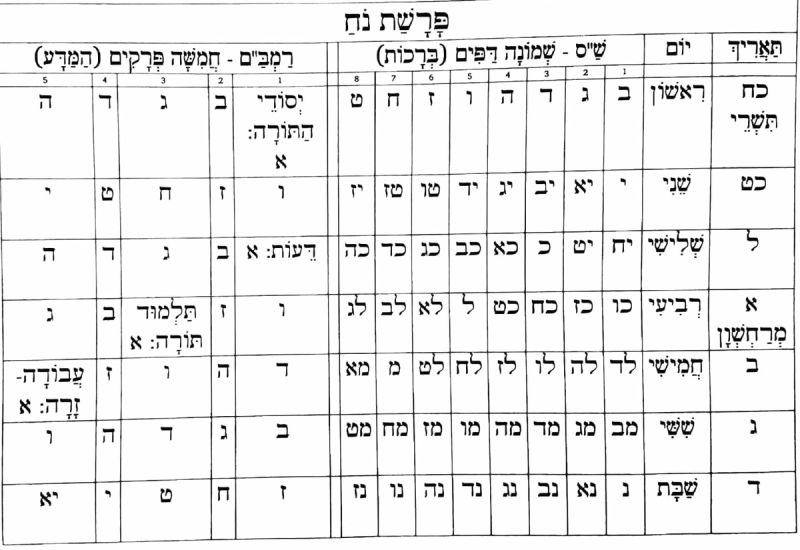 הלוח המחולק לפי סדר הלימוד אותו תיקן הרב ברלנד שליט"א