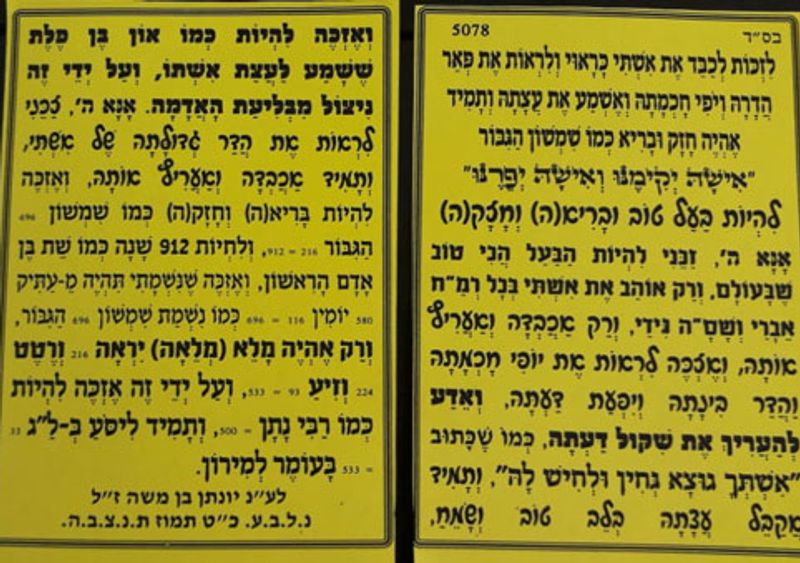 תפילה להיות בעל טוב ובריא(ה) וחזק(ה) - המדברת מהעניין לזכות לכבד את אשתי כראוי ולראות את פאר הדרה ויפי חכמתה ואשמע את עצתה ותמיד אהיה חזק ובריא כמו שמשון הגיבור