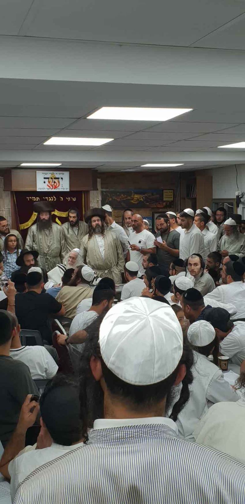 היום בלילה, מוצ"ש חקת, קצת לפני שלוש בבוקר, הגיע כ"ק הגה"צ הרב אליעזר ברלנד שליט"א אל 'בית רבינו' ברחוב הנביאים בבת-ים. הרב ברלנד שליט"א ערך סעודת מלווה מלכה במקום, שר עימם את הזמירות של המלווה מלכה ומסר את דברי תורתו הקדושים.