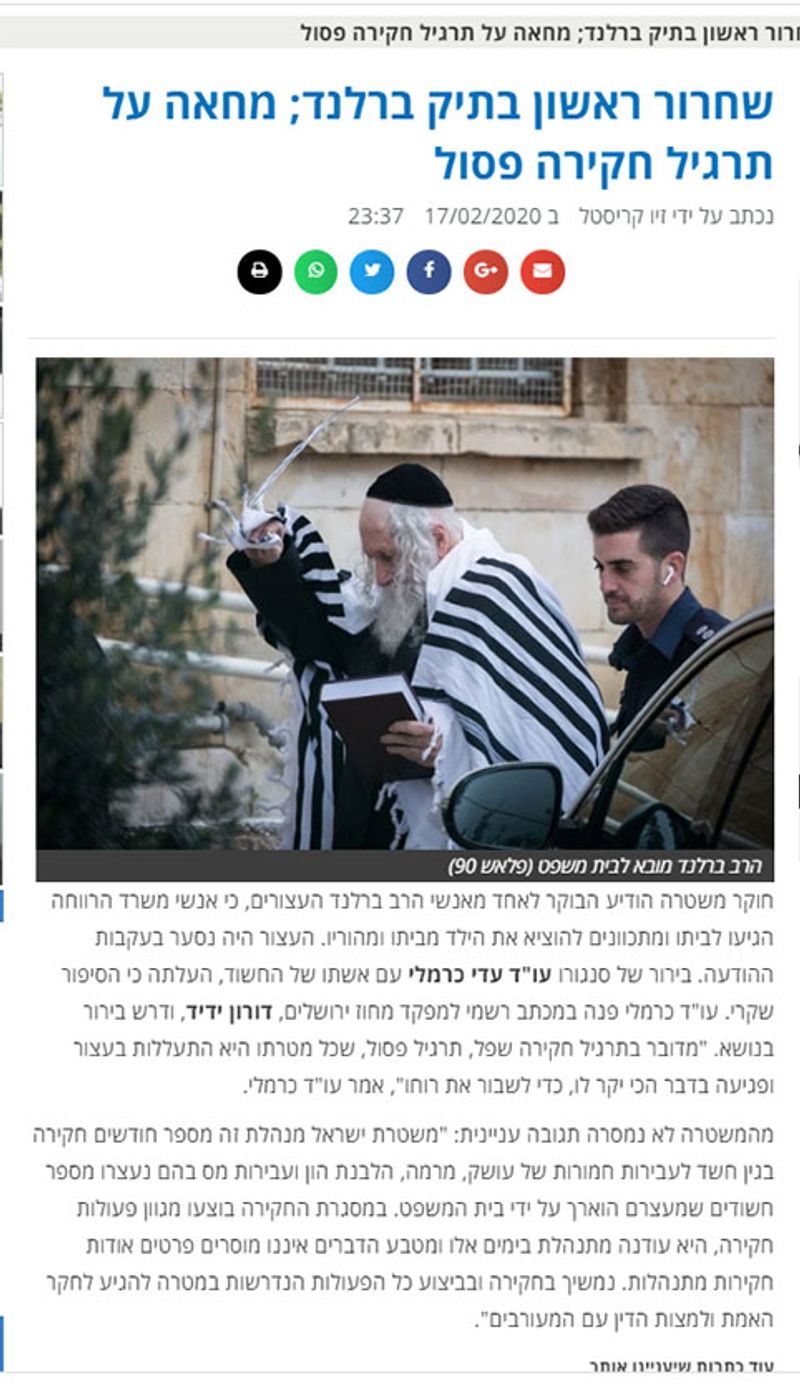 גם במקרה הזה לצערנו הפסטיבל התקשורתי חוגג ומוליך את משטרת ישראל כמו פודל צייתן לבצע הפקות תקשורתיות שישמשו כמניפולציות להסית את דעת הקהל כנגד הרב ברלנד.