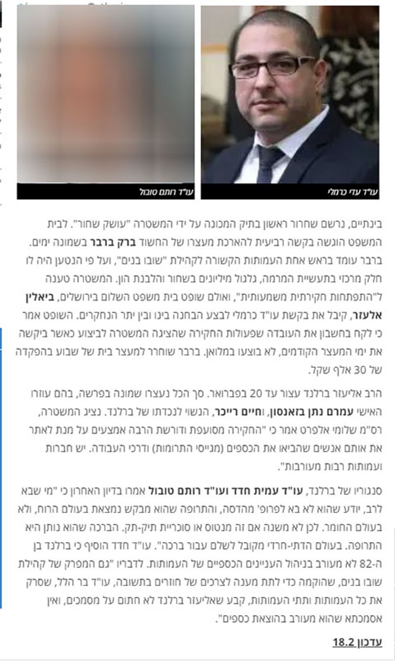 המשטרה בניסיון נואש בזוי ומבייש לסחיטת עד מדינה בפרשיית הרב ברלנד.