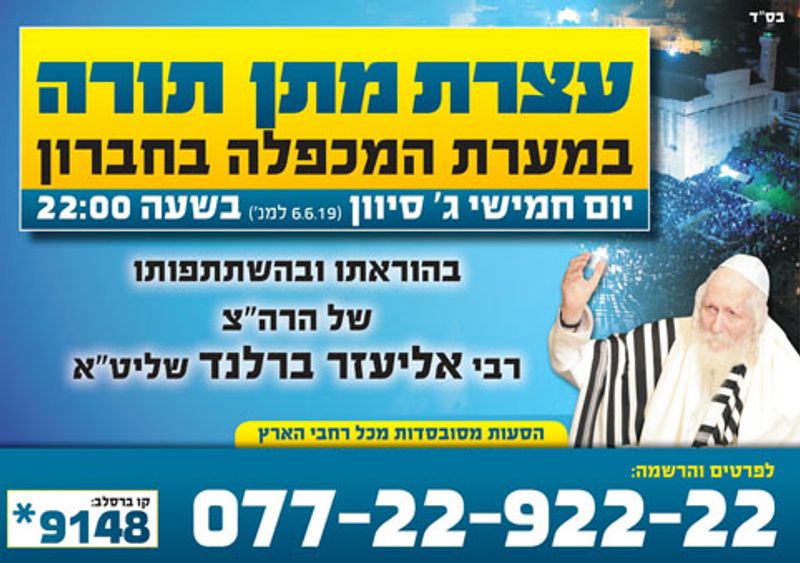 עצרת מתן תורה במערת המכפלה - בהוראתו של הגה"צ הרב אליעזר ברלנד שליט"א