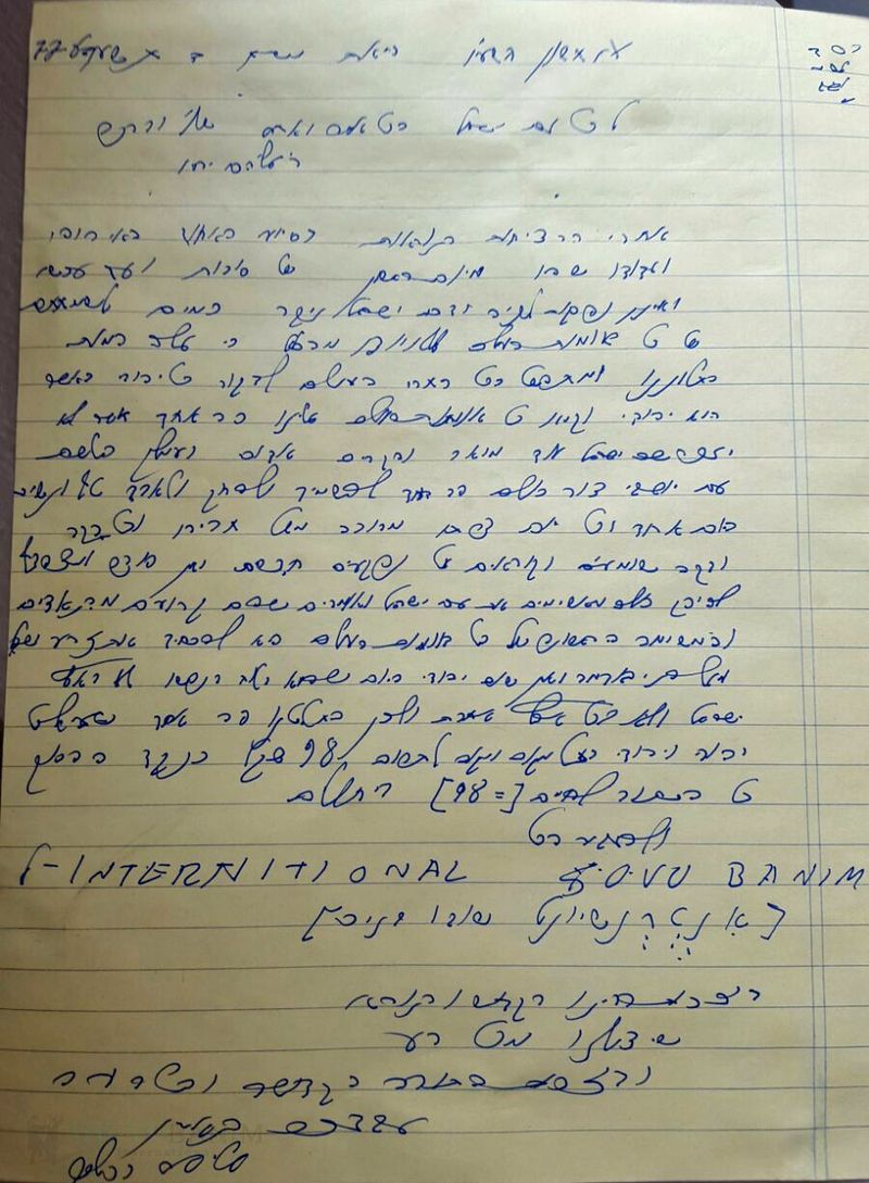 לטובת הציבור הבאנו כאן את המכתב במלואו: