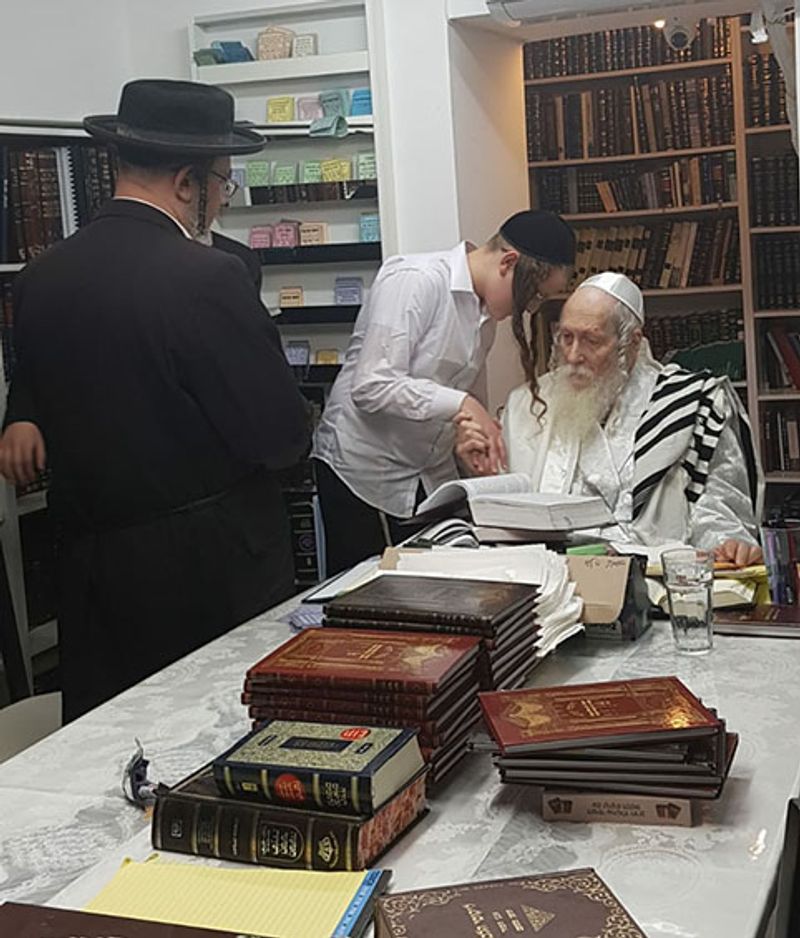 משפחת ביק אצל מורנו, הגה"צ הרב אליעזר ברלנד שליט"א, באים להתברך עם חתן הבר מצווה ממשפחת ביק