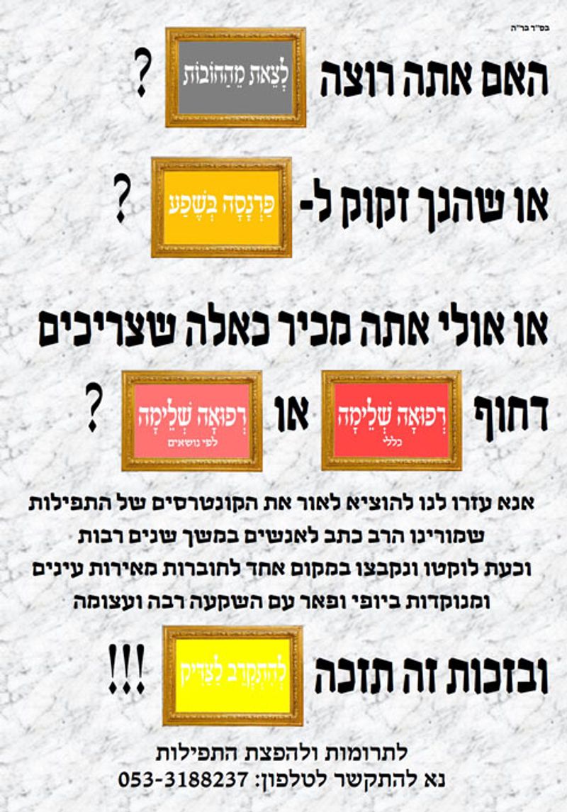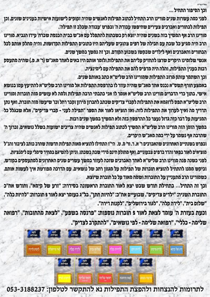 קחו חלק במפעל האדיר של הפצת התפילות של הגה"צ הרב אליעזר ברלנד שליט"א