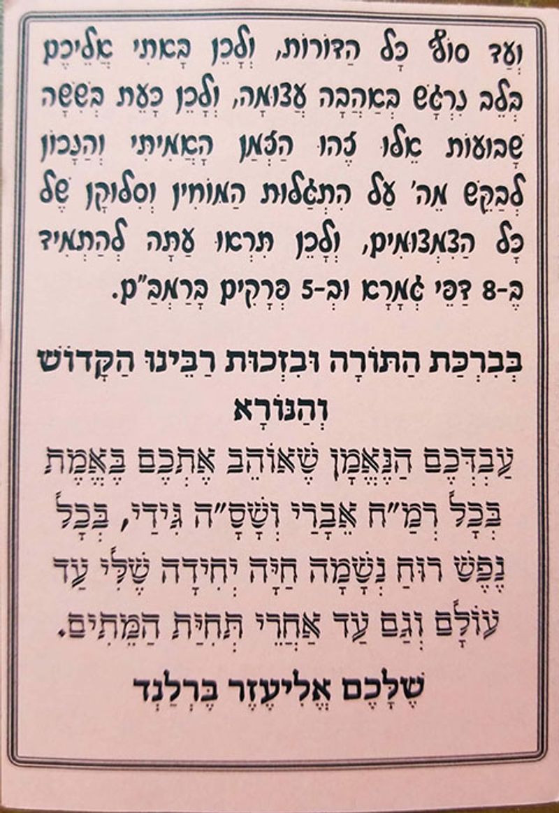 מכתב ותפילה לימי השובבים - הגה"צ הרב אליעזר ברלנד שליט"א