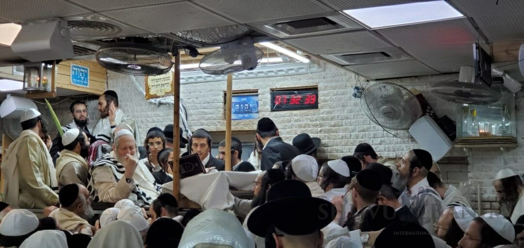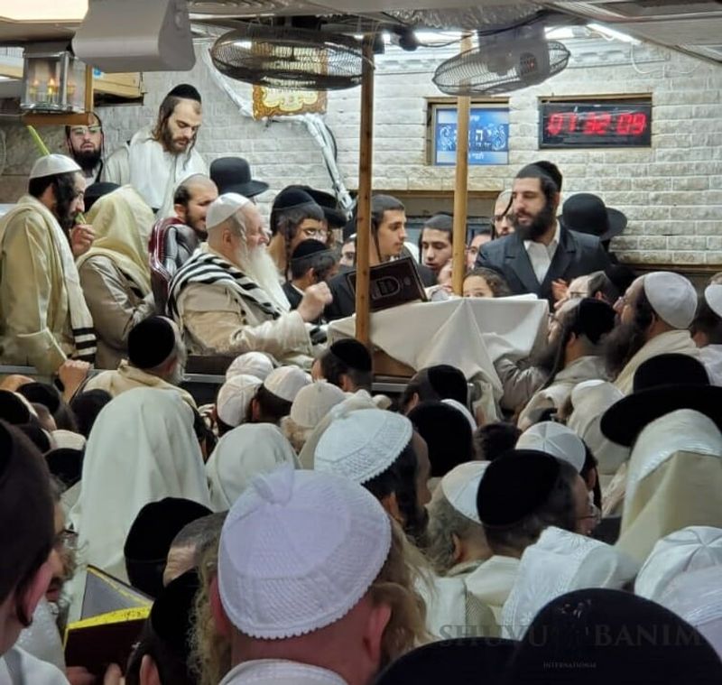 לאחריהם החלו בתפילת שחרית, נטילת לולב, הלל באריכות גדולה עם כל הניגונים, קריאת התורה, מוסף, התיקון הכללי, ושיעור שארך שמונה דקות בליקוטי הלכות חג הסוכות.