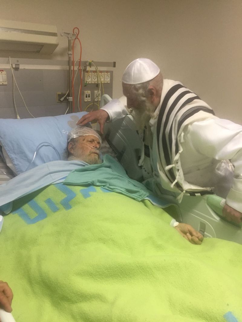 הגה"צ הרב ברלנד שליט"א נפרד מאחיו רבי יחזקאל זצ"ל בבית החולים.