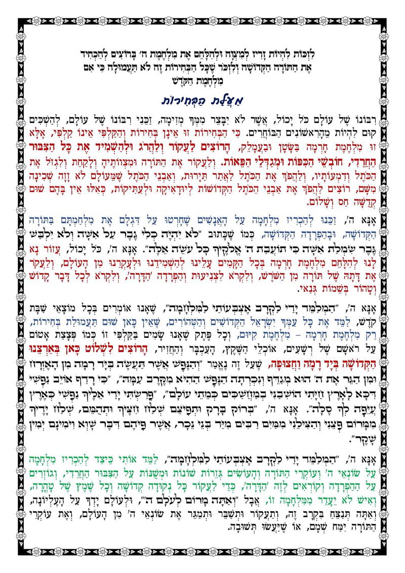 "לזכות להיות זריז למצוה ולהלחם את מלחמת ה' ברוצים להכחיד את התורה הקדושה ולזכור שכל הבחירות זה לא תעמולה כי אם מלחמת הקדש." מהתפילה החזקה של מורינו, כ"ק הגה"צ הרב אליעזר ברלנד שליט"א, המיוחדת ליום הבחירות.