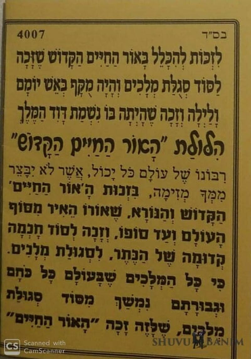 כ"ק מורינו, הגה"צ הרב אליעזר ברלנד שליט"א, חיבר תפילה נפלאה לכבוד היארצייט של ר' חיים בן עטר זצוק"ל, האור החיים הקדוש, שהיום, ט"ו בתמוז, חל יום ההילולה שלו.