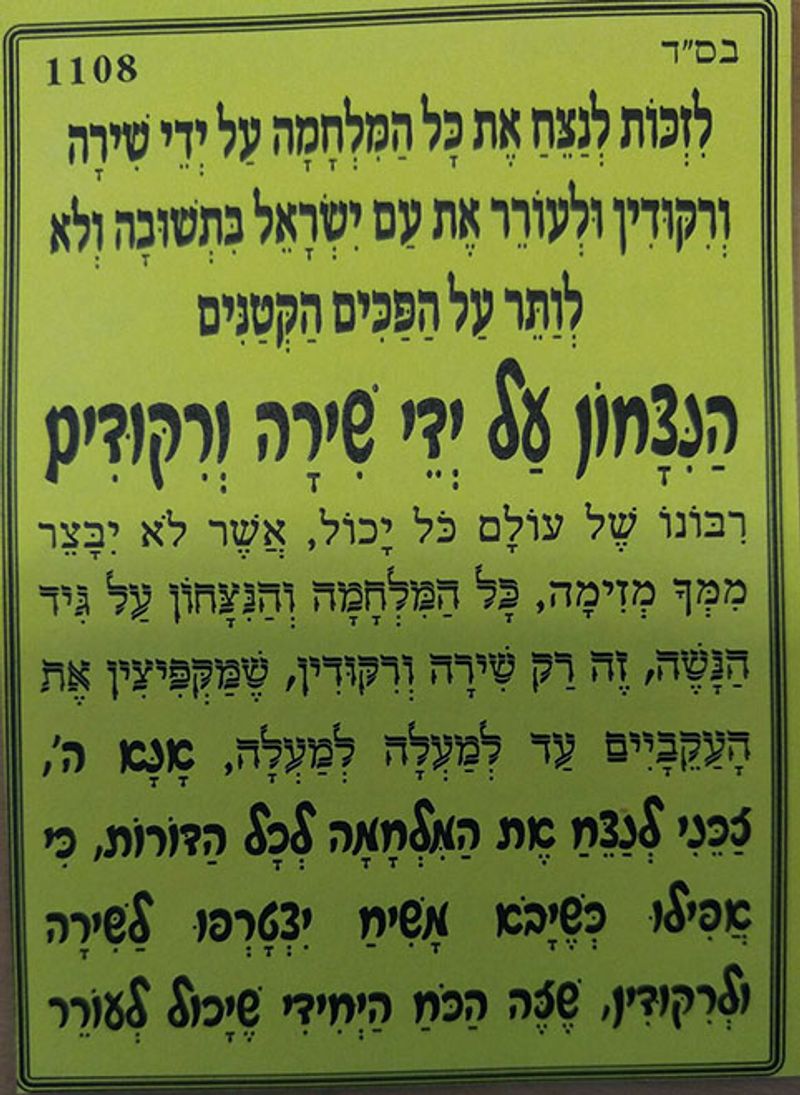 תפילה הניצחון על ידי שירה וריקודים - לזכות לנצח את כל המלחמה על ידי שירה וריקודים ולעורר את עם ישראל בתשובה ולא לוותר על הפכים הקטנים
