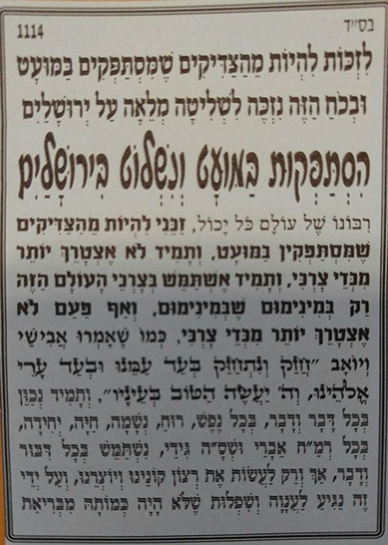 תפילה הסתפקות במועט ונשלוט בירושלים - לזכות להיות מהצדיקים שמסתפקים במועט, ובכוח הזה נזכה לשליטה מלאה על ירושלים