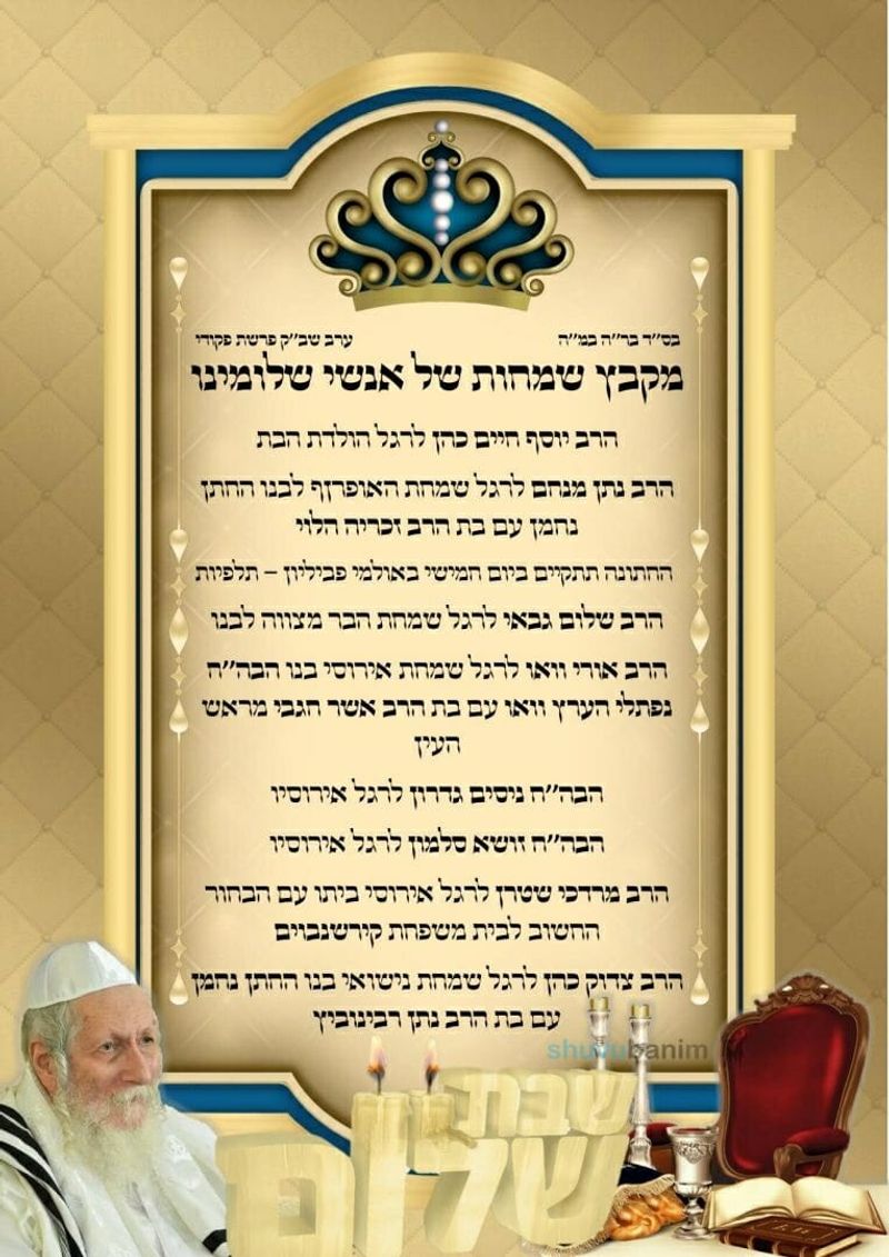 מקבץ שמחות של אנשי שלומינו ק"ק 'שובו בנים' לשבת קודש פרשת פיקודי