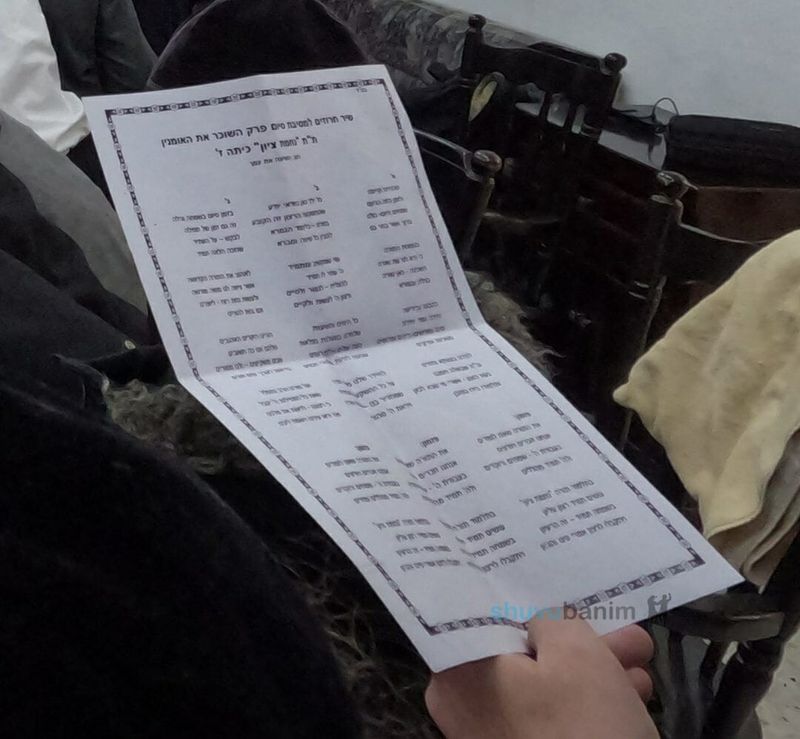 טרם החלוקת תעודות, המלמדים בחנו את ילדי החמד בפני מורינו הרב, והילדים ענו ברהיטות תשובה מלאה על כל שאלה שנשאלה, לאחר מכן חולק לילדים דפים עם שיר מיוחד שחובר לכבוד הכניסה אל הקודש פנימה, וכל הילדים הטהורים שרו ביחד במתיקות במנגינת 'הושיעה את עמך…' על הזכות ללמוד בשמחה בתלמוד תורה, לפניכם הפזמון המיוחד מתוך השיר: