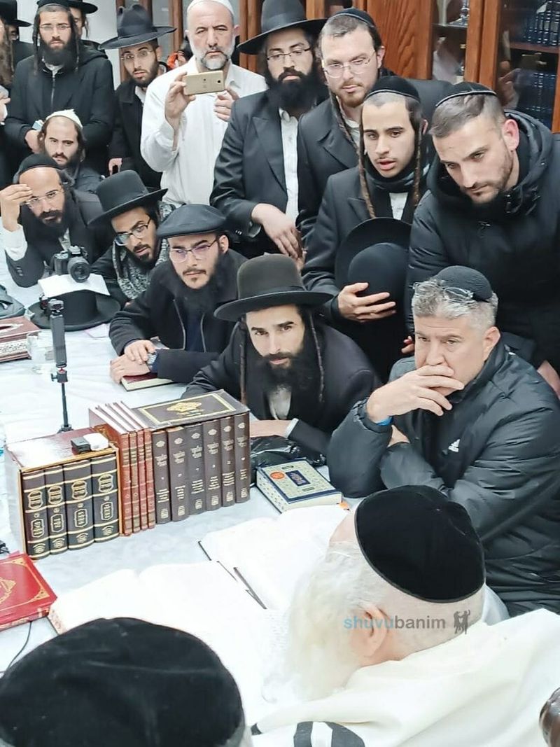 קבוצת מתקרבים "שובו בנים חולון" נכנסו לשיעור במעונו של הגה"צ מורינו הרב ברלנד שליט"א ■ שיעור אש להבה על פרשת השבוע ושלום בית
