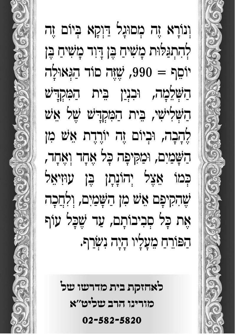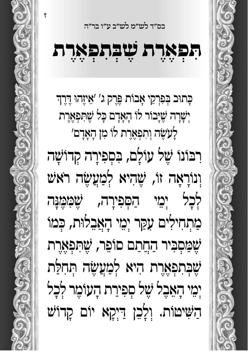 תפילה ממורינו, כ"ק הגה"צ הרב אליעזר ברלנד שליט"א, לימי ספירת העומר - תפארת שבתפארת