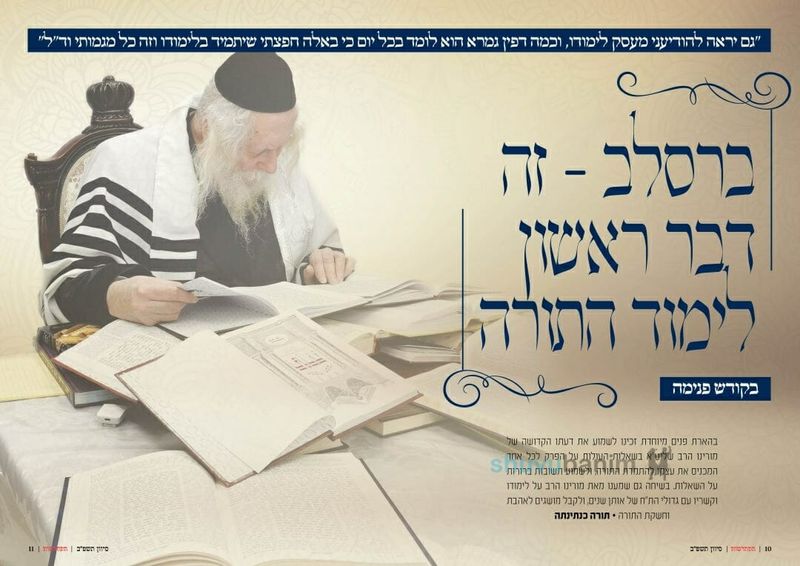 פרויקט מרתק ומיוחד על מהפכת נושא הלימוד תורה בחסידות ברסלב, אותו חולל מורינו הרב שליט"א. ובמרכזו, שיחת קודש עתירת גילויים עם מורינו הרב שליט"א על לימוד התורה בצעירותו עם גדולי הדור, שאלות העולות על שולחן הלימוד - על דרכי הלימוד והעיון לכל אחד ואחד החפץ לטעום את טעם התורה היקרה מפנינים.