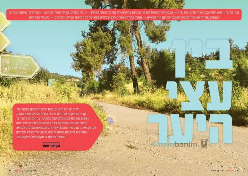 "בין עצי היער" - אמנם הצפון עמוס לעייפה במטיילים בימי בין הזמנים, אך על יער הבעש"ט הם כנראה טרם שמעו, אי שם בין צפת למירון, באמצע יער שנקרא 'יער הבעל שם טוב' ישנו מסלול של קברי צדיקים, אשר כמעט ומטיילים אינם בנמצא שם, וניתן למצוא בו מקום מפלט ושקט. / נתן אור אשד