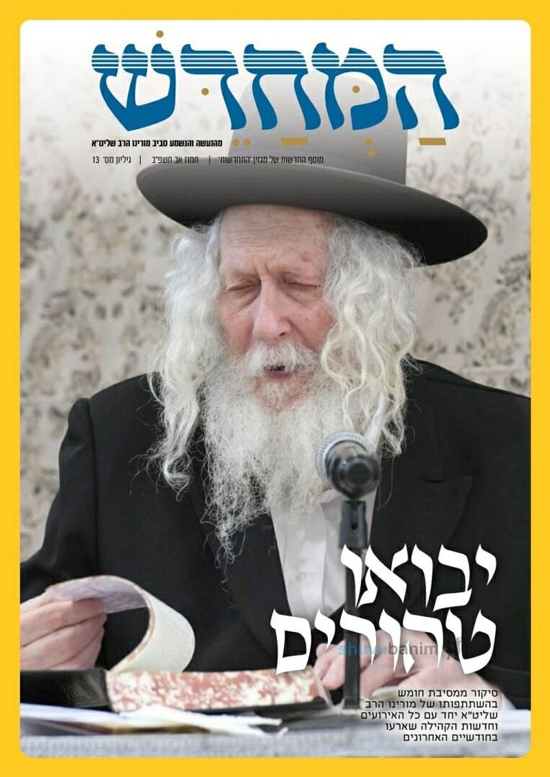 במוסף 'המחדש' תוכלו למצוא ב24 עמודים מלאים בכל טוב - בהם הסיקורים המלאים מהחודשיים האחרונים במחיצתו של מורינו הרב אליעזר ברלנד שליט"א - 'יבואו טהורים...' מסיבת חומש לילדי כיתה א' בנחמת ציון בהשתתפות מורינו הרב ברלנד שליט"א. 'קיבוץ שבועות' חג מתן תורה במחיצתו של הצדיק. 'מנעי קולך מבכי'... ער"ח אב בקבר רחל אמנו. 'בקודש פנימה' סיקור השיעורים במעונו של מורינו הרב שליט"א לקבוצות השונות מרחבי הארץ ובקהילתינו הקדושה. עוד ועוד זאת מהנשעה והנשמע סביב מורינו הרב בנוסף למדור חדשות הקהילה.