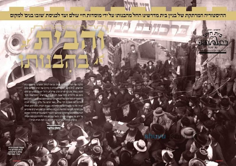 "והבית בהבנותו" - צוות 'התחדשות' צלל לנבכי היסטוריית הבניין והעלה זכרונות עד למעלה ממאה שלושים שנה עת נקנה בניין 'חיי עולם', ועל התקופות השונות שעבר הבניין, עד להגעת "שובו בנים" למקום. בחשיפת מסמכים ותמונות נדירות בפרסום ראשון. / נחמן גלעד