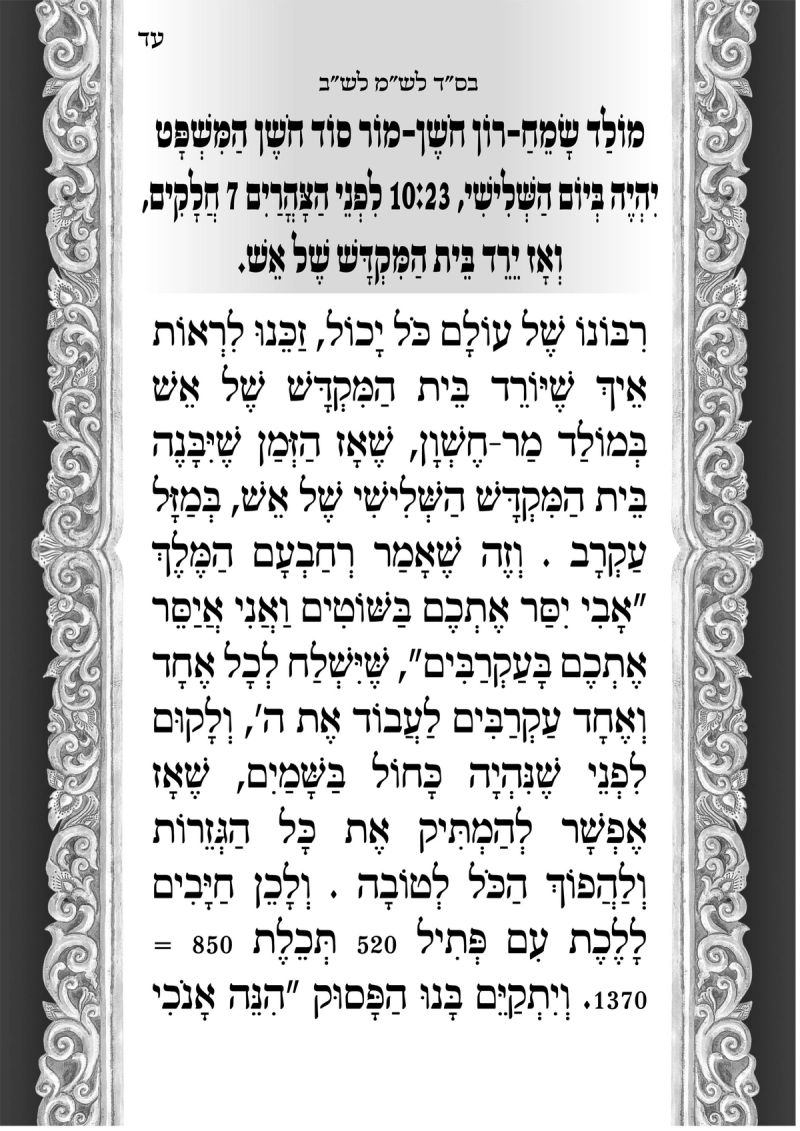 מוֹלָד שָׂמֵחַ - רוֹן חֹשֶׁן - מוֹר סוֹד חֹשֶׁן הַמִּשְׁפָּט יִהְיֶה בַּיּוֹם הַשְּׁלִישִׁי, 10:23 לִפְנֵי הַצָּהֳרַיִם 7 חֲלָקִים, וְאָז יָרַד בֵּית הַמִּקְדָּשׁ שֶׁל אֵשׁ.