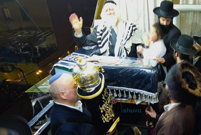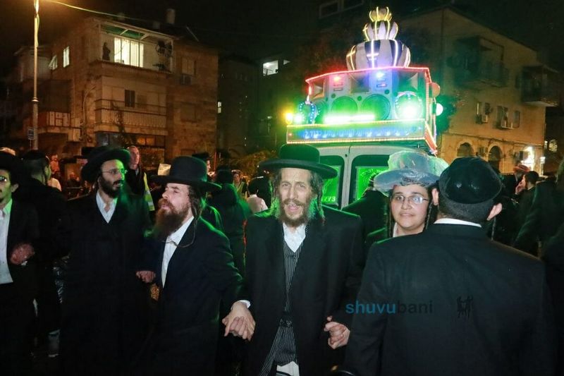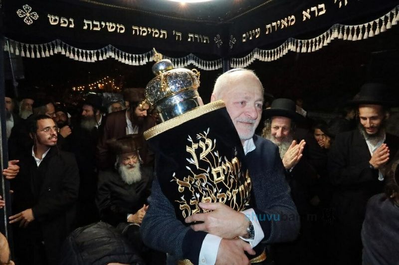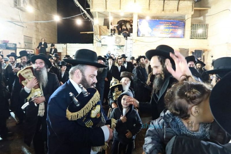תהלוכת הספר תורה: למרות הגשמים העזים התהלוכה יצאה בזמנה מבית קודשו של מורינו הרב אליעזר ברלנד שליט"א ברחוב החומה השלישית 14 לעבר בית מדרשינו ברחוב עידו הנביא, כשהתהלוכה עוברת ברוב עַם בשירה ובריקודים, ולמרות מזג האויר החורפי והגשמים העזים שירדו, לא מנעו ממאות מאנשי שלומינו לרקוד בשמחה עצומה לכבודה של תורה, כשהתהלוכה עוברת ברחובות; החומה השלישית, שבטי ישראל, שומרי אמונים, מאה שערים, עד שהגיעה לרחוב עידו הנביא 14 לרחבת אולם התפילות, שם נמשכו הריקודים ביתר עוז, כשבתוך כדי הריקודים מורינו הרב אליעזר ברלנד שליט"א נכנס למרפסת ביתו בשירת 'אור זרוע לצדיק', ויחד עם מורינו הרב ממשיכים הריקודים בהתלהבות גדולה יותר, כשהציבור הגדול רואה את מורינו הרב שליט"א קופץ ומרקד לכבודה של תורה כנער צעיר, כולם מתמלאים בתלהבות דקדושה וקופצים ומרקדים והשמחה מרקיעה שחקים, ואף תוך כדי הריקודים נכנס הרה"ח ר' אליהו מירב שליט"א ולמרות שאינו יכול להלך בשני רגליו רקד עם מורינו הרב שליט"א במסירות נפש ובשמחה עצומה לכבודה של תורה. לאחר למעלה משעתיים של ריקודים לכבודה של תורה בשירת 'אבינו מלכינו פתח שערי שמים לתפילתינו' הוכנס ספר התורה לארון קודש. ומורינו הרב שליט"א התחיל בתפילת מעריב כבכל ערב ולאחר מכן מסר שיעור מחזק בעניין הפרשה.
