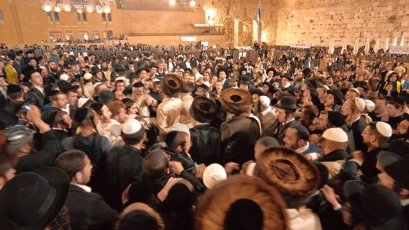 בשעה 23:10 מורינו הרב אליעזר ברלנד שליט"א הגיע אל שריד בית מקדשינו - הכותל המערבי, והחל באמירת שבע תיקון הכללי יחד עם אלפים מאנשי שלומינו, אנשים נשים וטף שזכו לעלות לרגל ביחד עם מורינו הרב שליט"א.