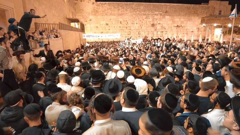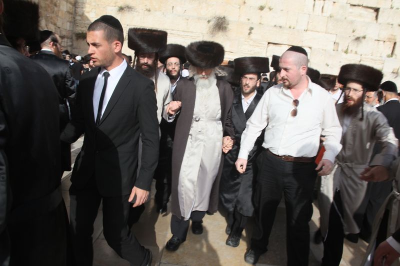 הגה"צ רבי אליעזר ברלנד שליט"א הגיע הערב בליל שלישי - ה' דחול המועד פסח, אל הכותל המערבי למעמד 'עליה לרגל' בהשתתפות אלפי איש.