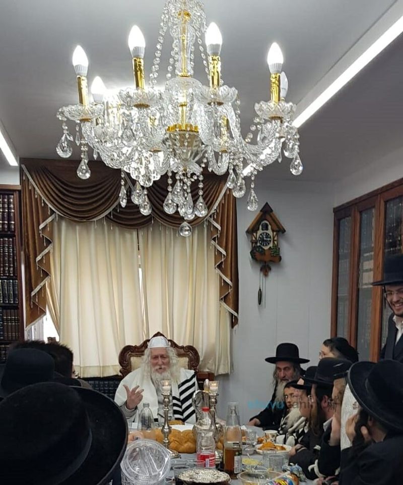 לאחר הברית התיישבו כל בני המשפחה והמקורבים לסעודת הברית כשבראש השולחן יושב מורינו הרב שליט"א שנטל את ידיו לסעודת הברית. ומיד החל בשירת הפיוט 'יום ליבשה נהפכו מצולים...' במשך שלושים וחמש דקות! לאחר מכן ברוח הזמן ולרגל שמו של הרך הנולד 'שמעון' החלו בשירת ניגוני ל"ג בעומר 'בר יוחאי' 'ואמרתם כה לחי...' במשך כעשרים דקות.