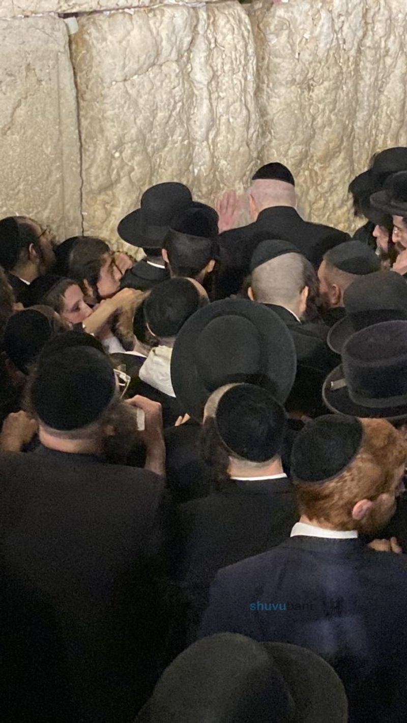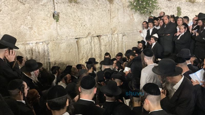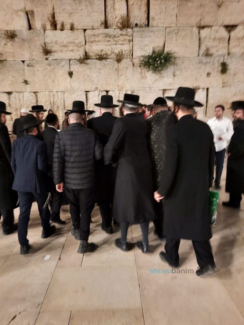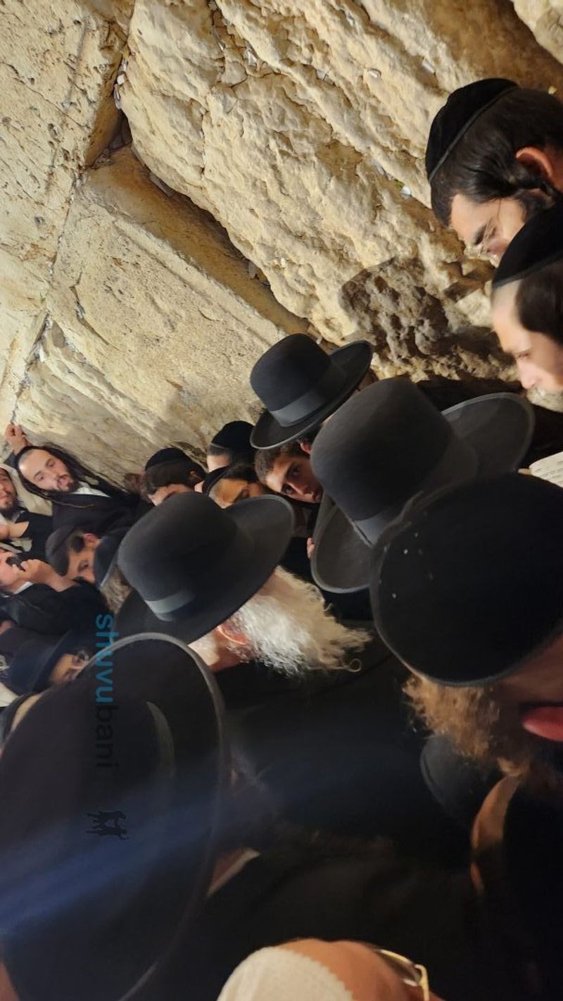 לאחר למעלה משעה וחצי של תיקוני הכללי מורינו הרב שליט"א נשק לאבני הכותל הקדושות נשא תפילה חרישית ולאחר מכן אמר קדיש ויצא מהכותל מלווה במאות מאנשי שלומינו בשירת 'עורה כבודי...' אשרינו שזכינו!
