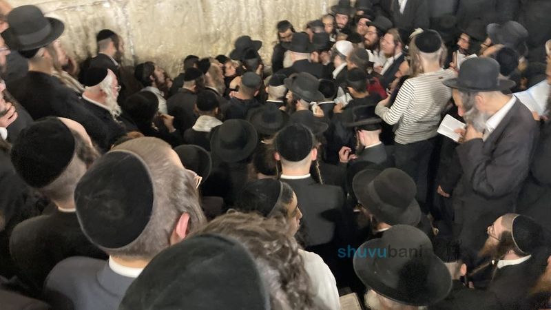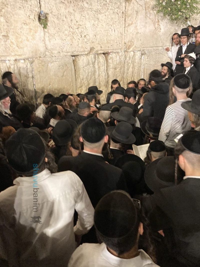 ביום שלישי י' סיון יצא במפתיע מורינו הרב שליט"א מביתו נאוה קודש בשעה 3:35 לפנות בוקר לכיון הכותל המערבי לכבוד עליה לרגל בימי ההשלמה של חג השבועות שהיה בשבוע שעבר. מורינו הרב שליט"א הגיע למקום, ותוך מספר דקות החלו להתאסף מאות מאנשי שלומינו סביב מורינו הרב שליט"א, ואמרו יחדיו שמונה תיקוני הכללי בניגון ובנעימה, בזה אחר זה בחיות גדולה מאוד!
