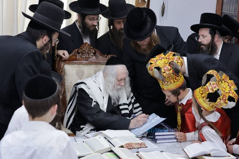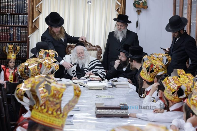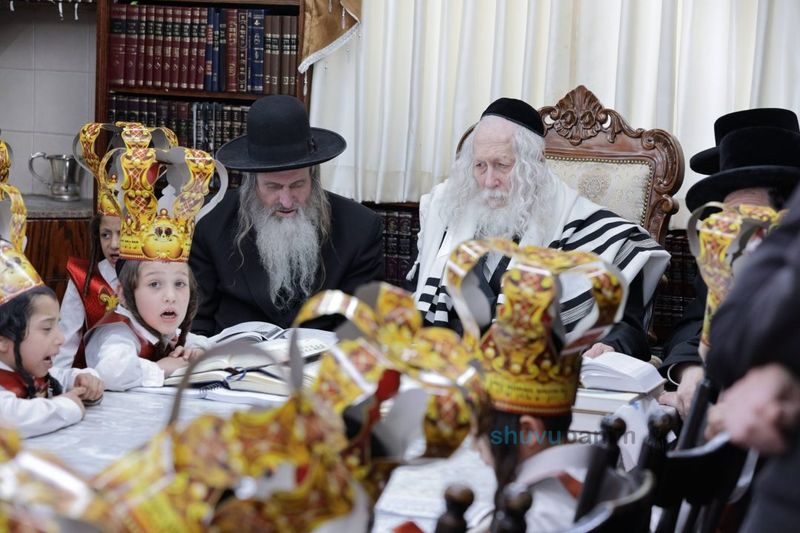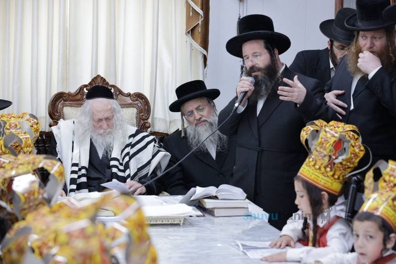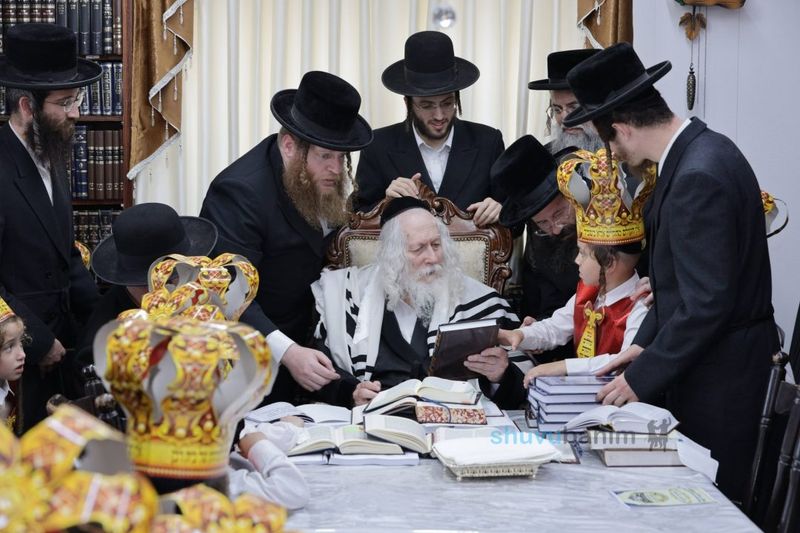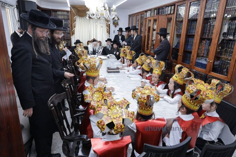 צאן הקדשים נכנסו כאשר כתר תורה לראשם והתיישבו סביב השולחן הטהור דקה דומיה של התרגשות ומורינו הרב שליט"א נכנס עטור בטלית, הילדים פצחו בשירי רגש מספר דקות כשבסיום השירים הרב'ה המסור - ר' נחמן רובינשטיין הי"ו קרא 'צאן קדשים' וכנהוג ענו בהבל פיהם הטהור 'מההה' לאחר מכן זכו הילדים ללמוד את הפסוקים הראשונים שבחומש ויקרא ע"י מורינו הרב שליט"א, כאשר להפתעם כולם מורינו הרב קרא פסוק ולאחריו ה'טיטש' בשפת היידיש, מה היה מרגש לחוות את הבל פיהם של תנוקות של בית רבן מתערב בקולו הזך והטהור של מורינו הרב שליט"א.