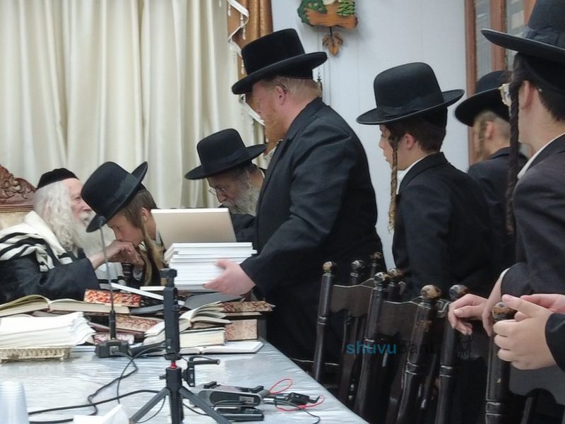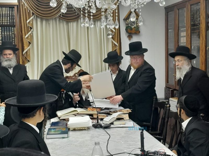 שיעור לנערים העולים לישיבה קטנה ○ מבחן שקלא וטריא על מסכת קידושין ○ חלוקת תעודות ע"י מורינו הרב אליעזר ברלנד שליט"א