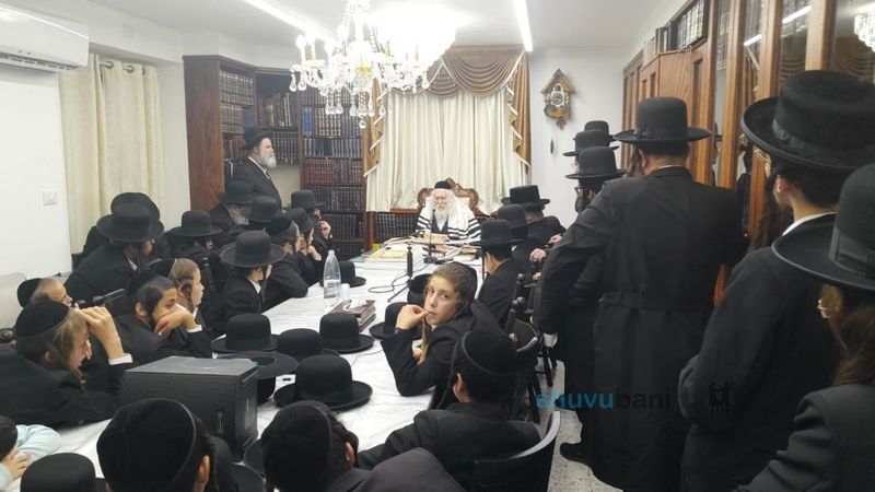 ילדי מכינה לישיבה בת"ת 'נחמת ציון' בשיעור ובקבלת תעודות מהגה"צ רבי אליעזר ברלנד