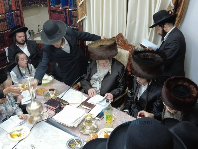 לאחר מכן הגיעו ליעקב וביקשו ממנו גם לזמן, ואמר שאינו יכול כי התחתן עם שתי אחיות, ועסק בשאלת הקצות החושן כיצד דוד התחתן עם שתי אחיות? וגם כיצד קידש את מירב, הרי גלית עצמו אינו שווה כלום "הן גויים כמר מדלי...", ותירץ בשם המהרי"ט שקידשה בשווי של המכה, ששאול היה שוכר מישהו לתת מכה, ובשווי זה קידשה. לאחר מכן עבר לשאלה כיצד קידש את מיכל, וכי אפשר לקדש במאה עורלות, וענה שניתן לתת אותם לכלבים. וקישר עניין זה לסוד שאמר שלמה "אבא מוטל בחמה וכלבים של בית אבא רעבים" שדוד הכניע את קליפת כלב. לאחר סיום השיעור, מורינו הרב שליט"א החל באמירת 'שיר המעלות' ולפני הזימון ממש מסר שיעור נוסף על כך מתוך הדגל מחנה אפרים שאומר ששמחת השבע ברכות יותר גדולה מיום הכיפורים. לאחר מכן כיבד את אבי הכלה הרה"ח ר' נחמן גולדשמידט שליט"א בזימון עם פיוט 'דווי הסר וגם חרון'. לאחר הברכת המזון מורינו הרב שליט"א כובד לומר את כל השבע ברכות. בסיום הסעודה מורינו הרב שליט"א קם ממקומו ולקול צלילי התזמורת החל לרקוד עם כל המסובים שזכו להשתתף בשמחת השבע ברכות, במשך קרוב לרבע שעה מורינו הרב שליט"א רקד סביב שולחנו הטהור. לאחר מכן יצא מיד לתפילת מעריב של אור ליום שלישי כשהוא עדיין בבגדי השמחה.