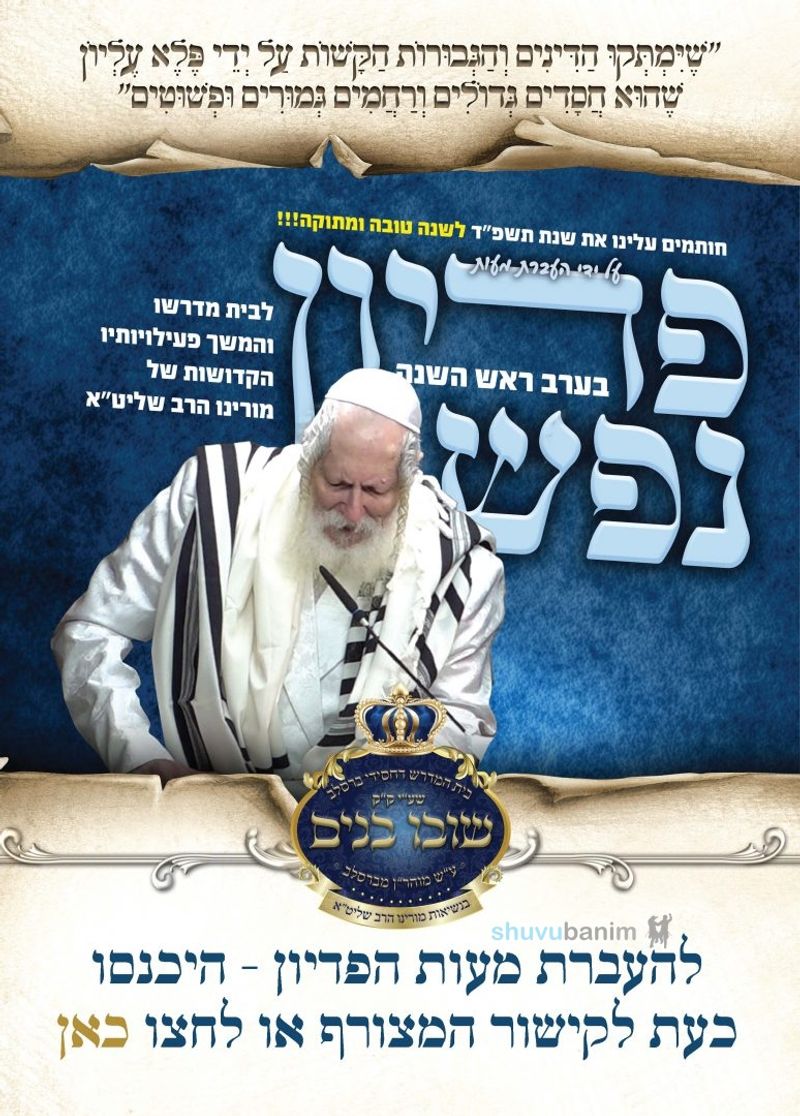 שיומתקו הדינים • בהוראת רבני הקהילה: פדיון ערב ראש השנה ל'איחוד חסידי ברסלב