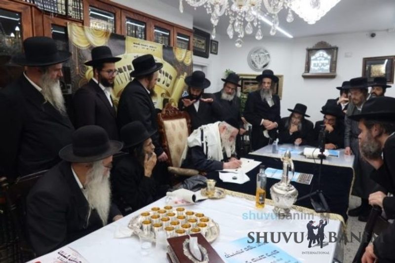 ביום גינוסיא דמלכא - יום חמישי האחרון כ"ג טבת - יום בו ירדה לעולם נשמת צדיק הדור מורינו הרב אליעזר ברלנד שליט"א, התאספו יחדיו רבני הקהילה בהשתתפות מורינו הרב אליעזר ברלנד שליט"א למעמד כתיבת ספר התורה להצלת והצלחת עם ישראל ולזכר הנרצחים במלחמת שמחת תורה ולהשבת החטופים בקרוב ממש. למעמד נכנס מורינו הרב שליט"א בשירת "כי אורך ימים ושנות חיים יוסיפו לך..." והחל בכתיבת האותיות הראשונות של ספר התורה "בראשית ברא אל־הים את השמים ואת הארץ", לאחר מכן ערך מעמד שתית לחיים ובירך הגפן. ואז החל במסירת שיעור אש להבה בו דיבר רבות על מעלת כתיבת ספר התורה. לאחר השיעור שנמשך כשעה אמר הרב שליט"א קדיש ונכנס בשירת 'ימים על ימי מלך תוסיף...' בחזרה למעון קודשו.