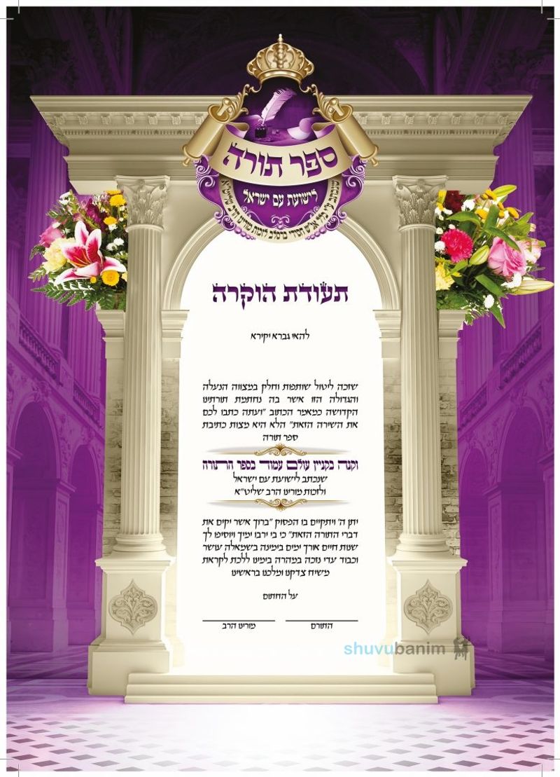 כל התורם יריעה שלימה יקבל תעודת שותפות חתומה ע"י מורינו, כ"ק הגה"צ הרב אליעזר ברלנד שליט"א