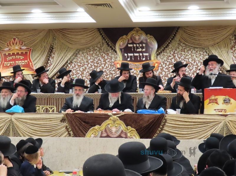לקראת השעה 17:00 מורינו הרב שליט"א נכנס למעמד לקול שירת 'כי אורך ימים' בשמחה עצומה על הזכות אשר מורינו הרב שליט"א מטריח עצמו להשתתף במעמד כבוד התורה לבחורי החמד. לאחר שהתיישב מורינו הרב שליט"א בכסא קודשו התזמורת ומקהלת הבחורים של שובו בנים ניגנו ניגוני רגש והתעוררות לכבוד המעמד המרגש. לאחר מספר דקות הר"ר איתמר רפאל מנחה המעמד, הזמין את הרה"ג ר' ברוך וידיסלבסקי שליט"א ראש כולל גור בקריית גת ומרבני גור בעיר אשדוד לשאת דברי חיזוק על מעלת לימוד התורה דווקא בימים אלו כאשר "בחוץ תשכל חרב" - ו"מחדרים אימה" זה פגעי הטכנולוגיה. והבחורים הטהורים של הישיבה הקדושה זוכים לעמוד בפרץ ולשקוע בעולמה של תורה. לאחר סיום דברי החיזוק זכינו למספר ניגונים נוספים. שלאחריהם המשא המרכזי ממורינו הרב שליט"א לפניכם תקציר דבריו שנאמרו במהלך המעמד: במרבית השיעור הרב עסק בחשיבות לימוד הגמרא בעיון ובזה אף החל את משא קודשו בתורה ל"א תנינא מכך שעל ידי הנגינה אדם ניכר אם קיבל עליו עול תורה ופירש הרב שאם אפשר לנגן ולשיר אם לא לומדים תורה. בתוך דברים אלו עסק בעניין אסתר שקיללה את אחשוורוש וקראה לו "כלב" ומכיוון שכך המתיקה עליו הדינים שהיו עליו. ואמר שאדם אסור לו לקלל אף אחד לא משנה מי זה ומה הוא עשה. כמו כן הזכיר את הפטרת פרשת השבוע - שירת דבורה שנקראת אשת לפידות מכיון שהייתה מוקפת אש ואף התנאים והאמוראים היו מוקפים אש כרבי זירא ועשרה הרוגי מלכות. מעניין לעניין דיבר במעלת רבי עקיבא אשר סרקו את בשרו במסרקות של ברזל ואמר שאם אדם לומד וקשה לו ואף על פי הוא מתגבר נחשב לו הדבר כאילו סורקים את בשרו במסרקות של ברזל! הרב אמר ש'עין לא ראתה אלוקים זולתך' נאמר על הרוגים על קדושת ה' ואלה ההרוגים במלחמה הי"ד אין כל בריה יכולה לעמוד במחיצתם. וכן סיפר על גבורת אלה אשר נעקדו בשנות השואה האיומות הי"ד ואלה שניצלו מעל לדרך הטבע. מבעד לדברים אלו חזר לחזק את הבחורים לעמוד על המשמר כנגד פגעי הטכנולוגיה. לאחר דברי אש להבה אלו חזר לעסוק במעלת לימוד התורה ובעיקר בעיון התורה, ועסק בפרשיות השבוע ביציאת מצרים ואמר שכל מה שעם ישראל יצא ממצרים היה רק בשביל עסק התורה. בחלקו השני של השיעור עסק בשני נושאים עליהם מרבה לדבר, הראשון שבהם הם מחלוקות הראשונים והאחרונים בסוגיות השונות כדוג' בן פקועה ומכירת בני השפחות שעל סוגיות אלו נשפכו דיו כים אשר אין לו סוף ובעצם מבהיר הרב שליט"א כי אלו היו המחלוקות בין האחים לבין יוסף הצדיק. ועסק במכירת יוסף אשר נמכר בעבור נעליים ובעצם זה עניין תפירת הנעליים לשכינה - שיהיה מקום לשכינה גם במקומות הנמוכים. וחזר לכך שכאשר הבחור לומד גמרא בעיון הוא בורא נעליים לשכינה. הנושא השני הוא הביטול לצדיק בעניין אליעזר שהלך לחפש שידוך לרבקה ולמרות כל הקושיות צעק לה', כמובא בתורה מ"ו שראשי תיבות "שמע ה' קולי אקרא" הוא 'קשיא'. ומכיוון שזכה לצעוק לה' זכה לראות שמרבקה יצא יעקב אבינו והבין מדוע אברהם שלחו דווקא לשם. בתוך הדברים הרב חיזק שוב ושוב את לימוד הגמרא וניצול הזמן והזכיר את שר התורה הגר"ח קנייבסקי זצוק"ל שפעם אחת ערך סיום הש"ס בחמש דקות והסביר שכאשר היה מחכה בחופות היה לו פנאי של חמש דקות וניצל אותם לסדר מיוחד של ש"ס. את המשא המרכזי הרב סיים במעלת היום - חמישה עשר בשבט שהוא ראש השנה לכל דבר ואמר שכל מה שאדם מבקש בט"ו בשבט הוא בוודאי יקבל בזכות היום הקדוש והמרומם הזה. לאחר למעלה מחצי שעה של דיבורי אש להבה תורה מסיני מורינו הרב שליט"א סיים את המשא המרכזי והחל לשיר 'וראה בנים לבניך' ומשם למחרוזת של ניגוני שמחה וריקודים על זכות להיות חלק ממעמד כבוד התורה הקדושה 'שהבדילנו מן התועים ונתן לנו תורת אמת'! דקות של ריקודים והס הושלך באולם עת ביקש הר"ר איתמר רפאל ממורינו הרב שליט"א את ברכתו לבחורים ואכן מורינו הרב שליט"א נעתר בירך את הבחורים שיזכו לסיים את הש"ס עוד השנה, ומי שיזכה אף לשבעה פעמים. לאחר מכן הרגע המרגש ביותר של הערב מנהלה הרוחני של הישיבה ה