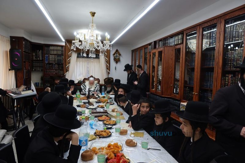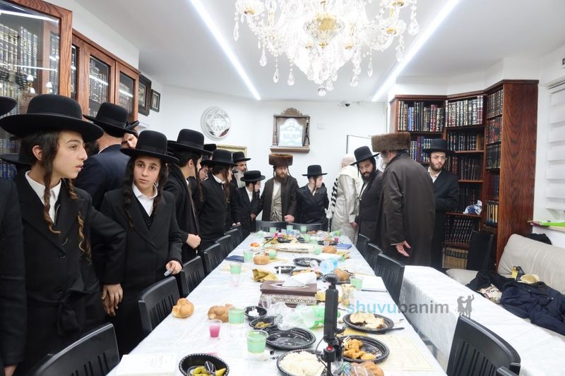 מעמד שמחת הבר מצווה לנינו של מורינו הרב אליעזר ברלנד שליט"א במעון קדושו○ שיעור בסעודת המצווה ○ הגרעמאן ודרשת בר המצווה ○ שירי רגש וריקודים בשירי השמחה