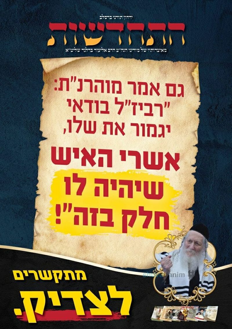 הביאו ברכה אל ביתכם, בהימנות על הירחון שיחולק למנויים, וטלו חלק בהפצת אור הצדיק, אצלכם, בתוך הנשמה ואצל אחרים.