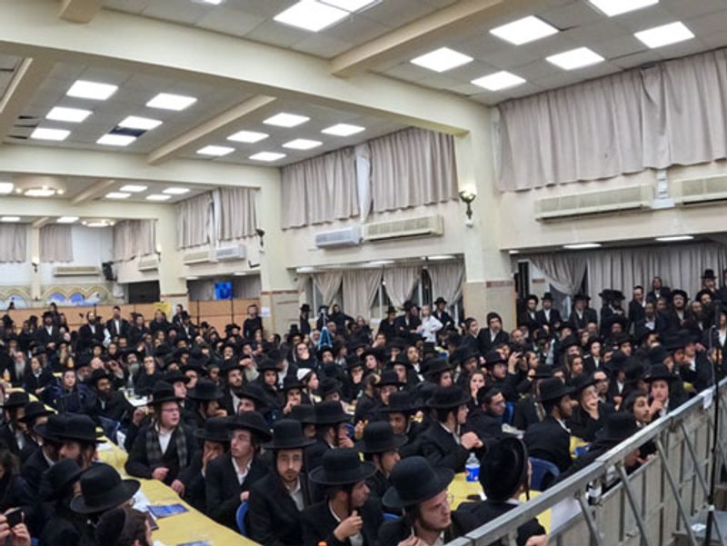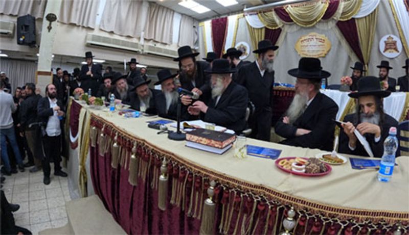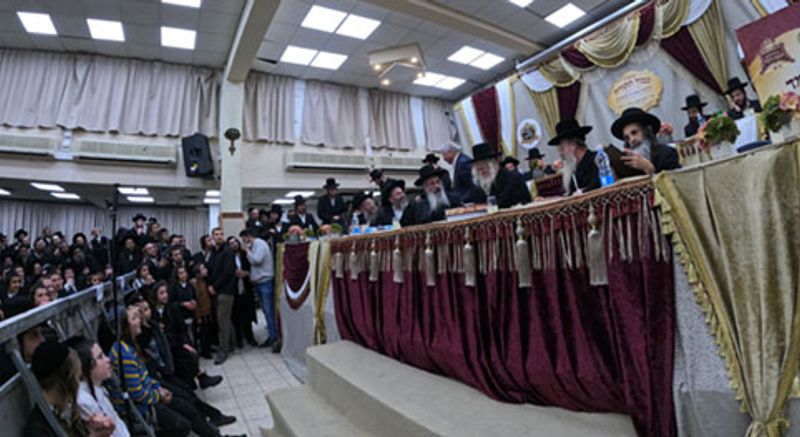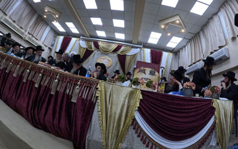 בשעה 19:30 זרם של התרגשות עובר באולם מורינו הרב שליט"א נכנס לקול שירת "אלי אלי למה עזבתני…" בניגון ברסלב המעורר מורינו הרב שליט"א התיישב על כסא קודשו כשלצידו יושב ידידו ורעו של מורינו הרב משכבר הימים - גאב"ד קוממיות הגאון רבי משה מנדלזון שליט"א.