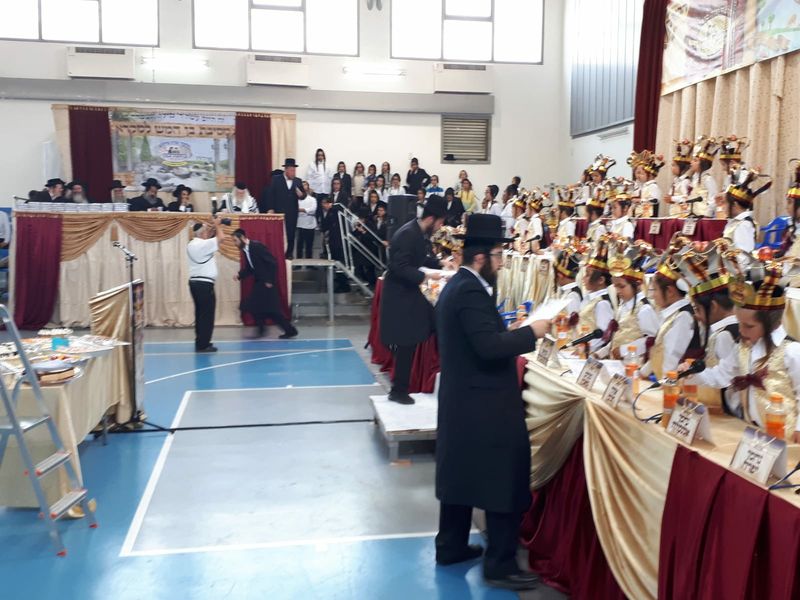 Afterward, the supervisor Rabbi Altman spoke in praise of the important teachers, R' Yechiel and R' Zucker, as well as all the members of the administration who invest their energy and time so that every child will grow in Torah and fear of Heaven in the pure path of our holy Rebbe, as instilled in us by our teacher the Rav shlit"a. Finally, the director of the institutions, Rabbi Natan Chananya, may Hashem protect him, who gives his all for the future generation in all the institutions for the future of Shuvu Banim, was honored. Here, one could see our teacher the Rav shlit"a going out of his way to applaud the extensive efforts of R' Natan Chananya, may Hashem protect him.